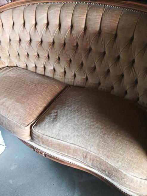Piękna antyczna kanapa pokryta aksamitem .nie zniszczona. Nie uszkodzona.odbior jak najszybciej .cena ruchoma